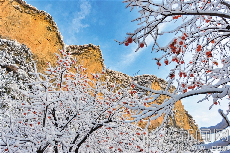 你看,那雪色覆盖中的山岭云峰、圣母谷、五龙宫,以及满山的柿子树、冬松……雪花随意穿帘幕,处处都是美得空灵的胜景。