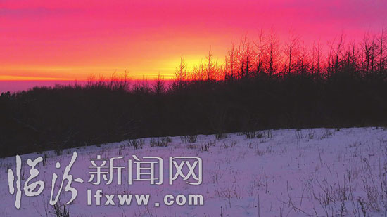 东方泛红,一轮朝阳呼之欲出,心中的美景期望值也在升腾。然而天公不作美,红霞映霍山主峰——老爷顶,还是与记者一行失之交臂。记者的镜头仅仅留下一张东方红霞。而在弥陀翁看整个霍山身披银装,巍峨起伏,让人感到是一幅漂亮无比、气势恢宏的水墨画。 (记者 王隰斌 摄影报道)