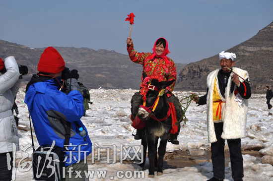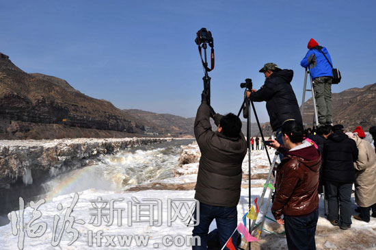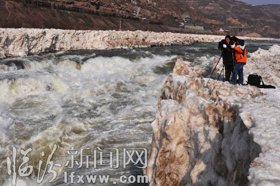 摄影爱好者们正在拍摄黄河壶口瀑布冰景。吕桂明 摄