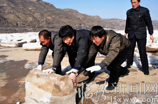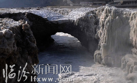 黄河壶口瀑布奇特冰景——冰桥。吕桂明 摄