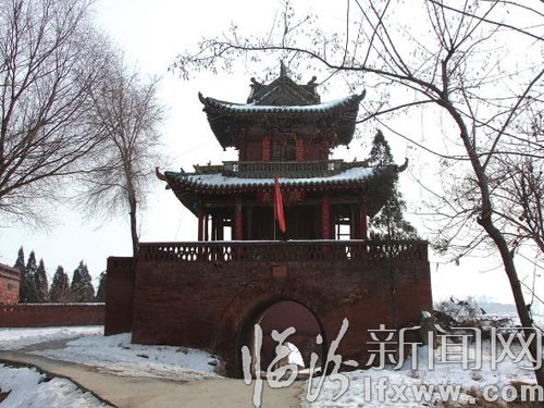 玉皇楼创建于何时,已无人能说清楚,位于洪洞县刘家垣西义村村东的玉皇楼一直是村民的骄傲。这座古色古香、精巧别致的古楼,在雪后的垣上更是韵味独特,砖砌的门洞,木架的楼檐,红色的楼身,精美的题词,沧桑的碑刻、琉璃覆盖的楼顶,在白雪掩映的阳光下,散发着独特而又诱人的光芒。