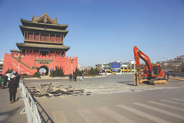 在玉皇楼拱形门洞之上各有一块碑碣,一块碑碣上有“镇风楼”三个模糊的大字,另一块还有部分文字记载,由于时间久远,部分文字模糊不清,但这并不影响玉皇楼这一古建筑的美观和对人们的吸引力。(文/图记者 王隰斌 张春茂)
