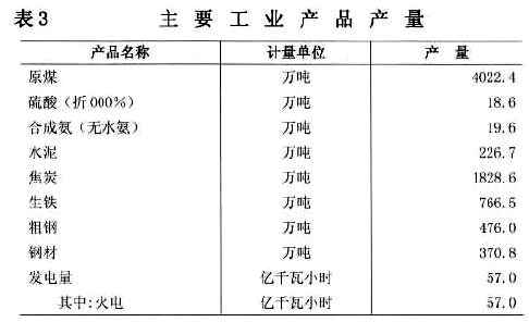 2008年,工业企业法人单位主营业务收入1351.5亿元,比2004年增长122.1%。其中,采矿业占30.8%,制造业占68.0%,电力、燃气及水的生产和供应业占1.2%。主营业务收入超过10亿元的行业有10个,比2004年增加3个,其中:黑色金属冶炼及压延加工业424.6亿元、煤炭开采和洗选业387.2亿元、石油加工炼焦及核燃料加工业332亿元、有色金属冶炼及压延加工业39.6亿元、化学原料及化学制品制造业38亿元、专用设备制造业30.5亿元、黑色金属矿采选业28.3亿元、电力热力的生产和供应业14.8亿元、非金属矿物制品业10.5亿元、通用设备制造业10.5亿元。