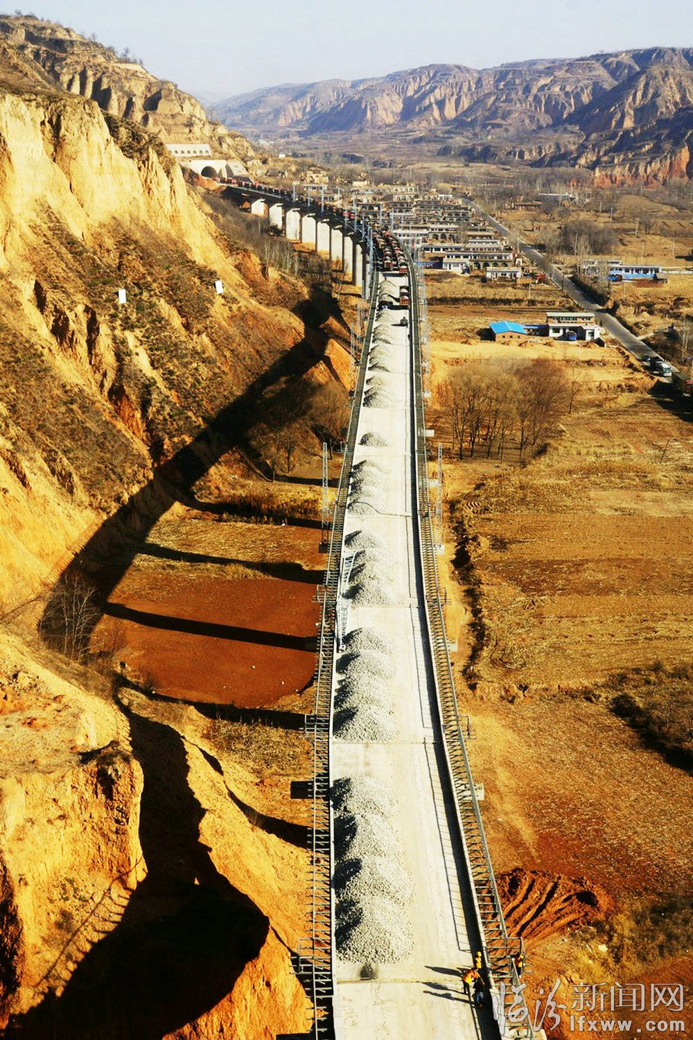 建设中的山西中南部铁路出海通道,西起山西省吕梁市兴县瓦塘镇,终点为山东省日照港,全长1260公里,功能定位以煤运为主,兼顾客运,是我国重要的能源大通道,在隰县境内全长42.15公里,也是隰县历史上第一条铁路。隰县员家庄特大桥穿越苛西隧道群,横跨洪永公路,是中南铁路由北进入隰县县城的标志。
