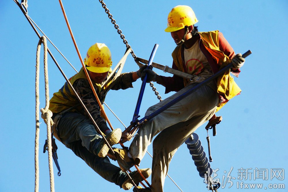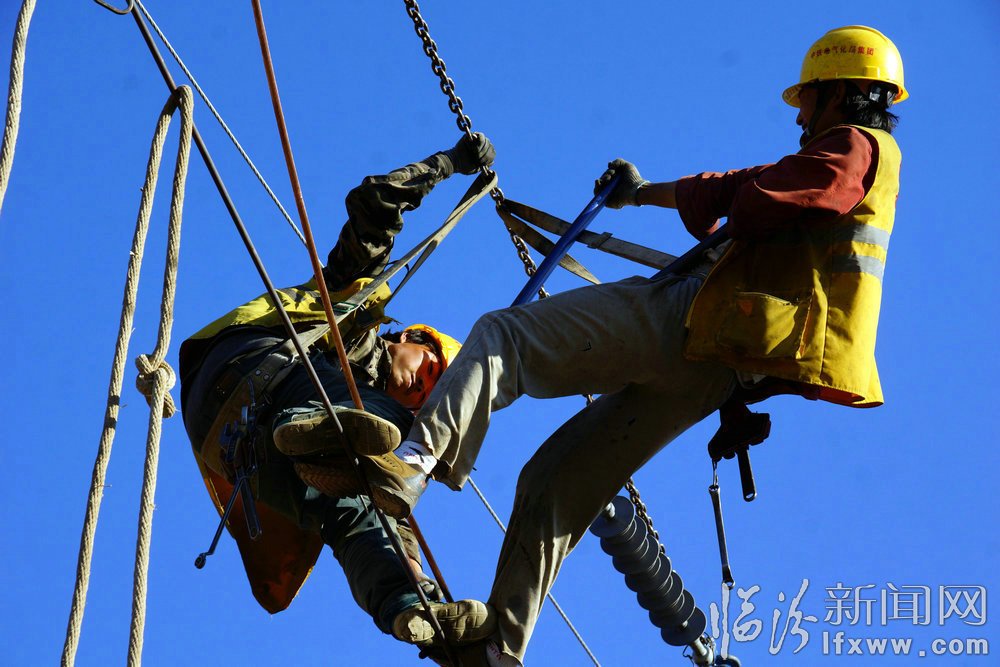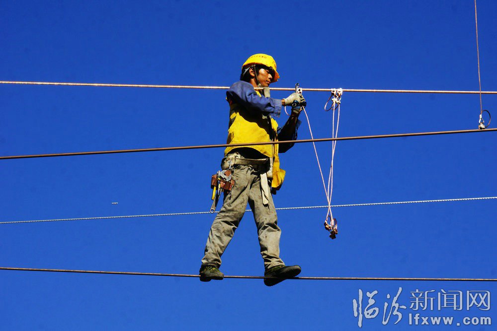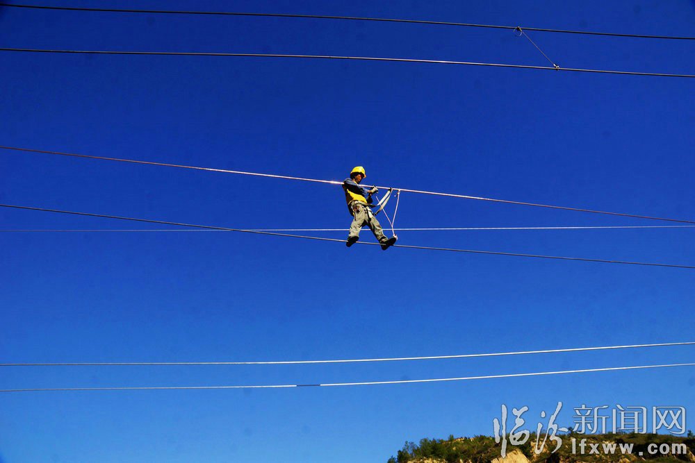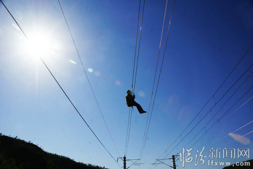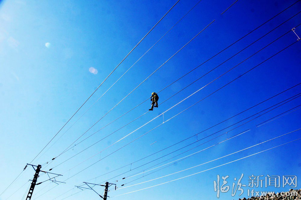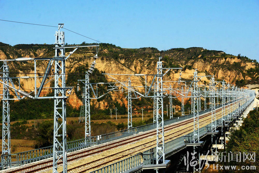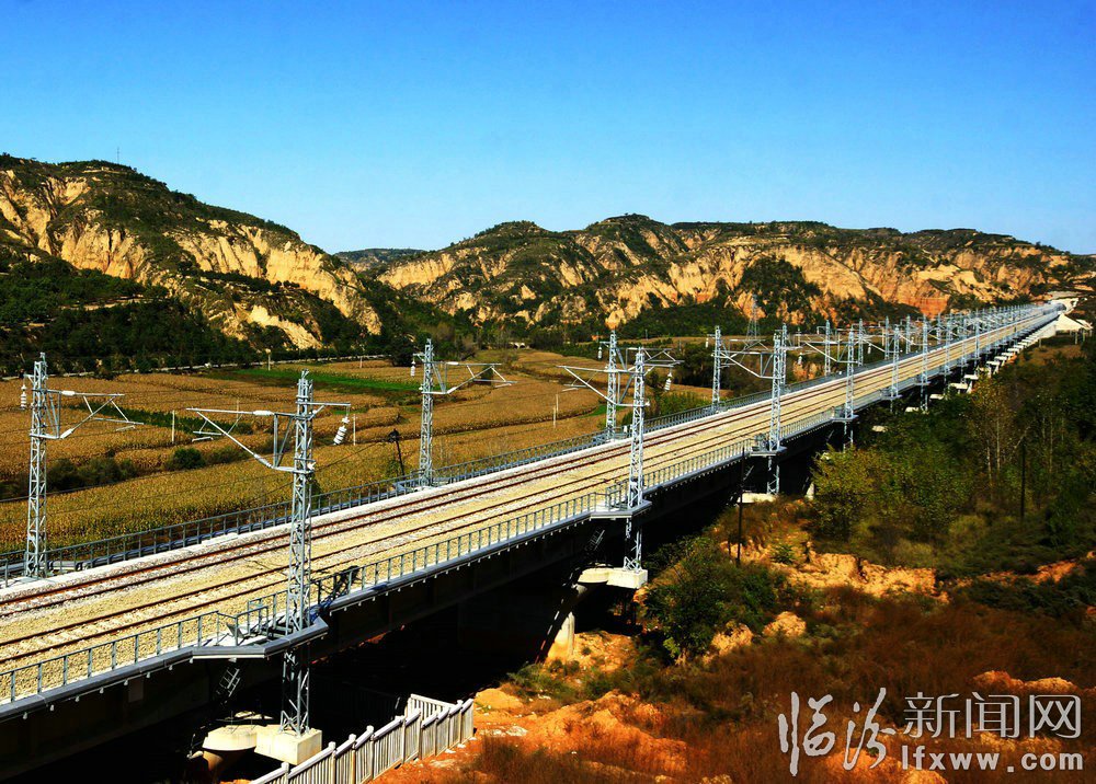建设中的山西中南部铁路出海通道,西起山西省吕梁市兴县瓦塘镇,终点为山东省日照港,全长1260公里,功能定位以煤运为主,兼顾客运,是我国重要的能源大通道,在隰县境内全长42.15公里。预计2014年年底试运营。国庆节期间,中铁电气化的工人们加班加点,挥汗如雨,在长空蓝天度过佳节。