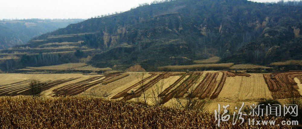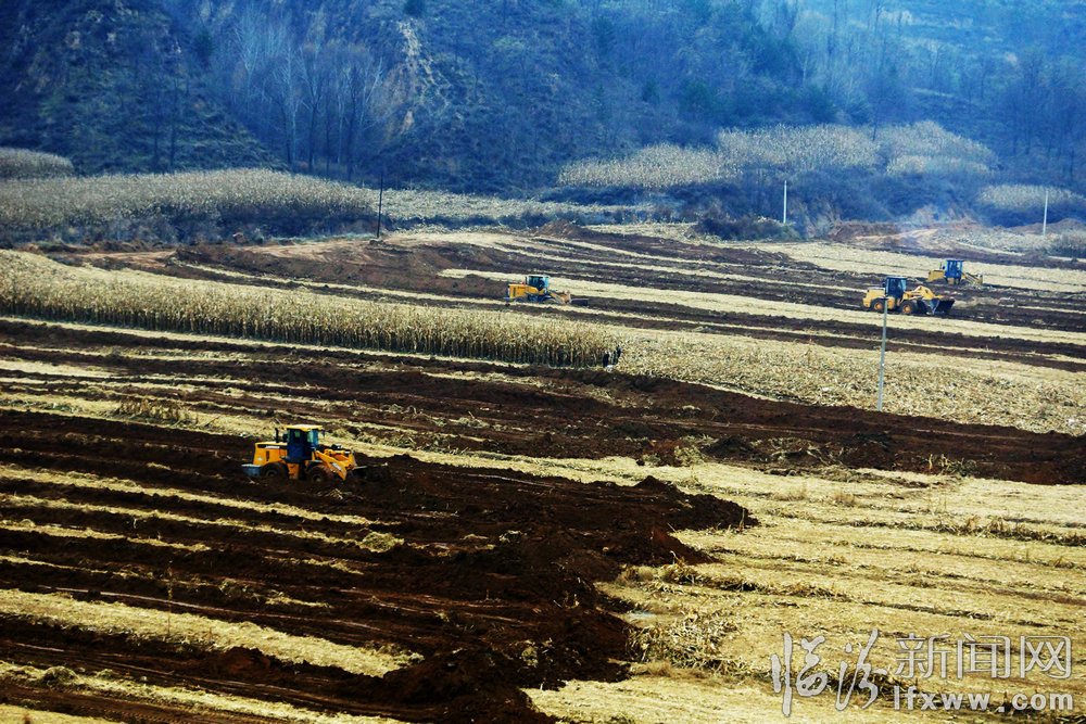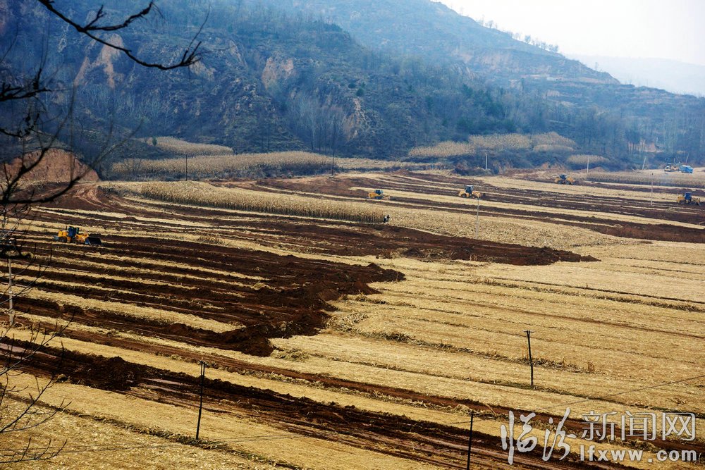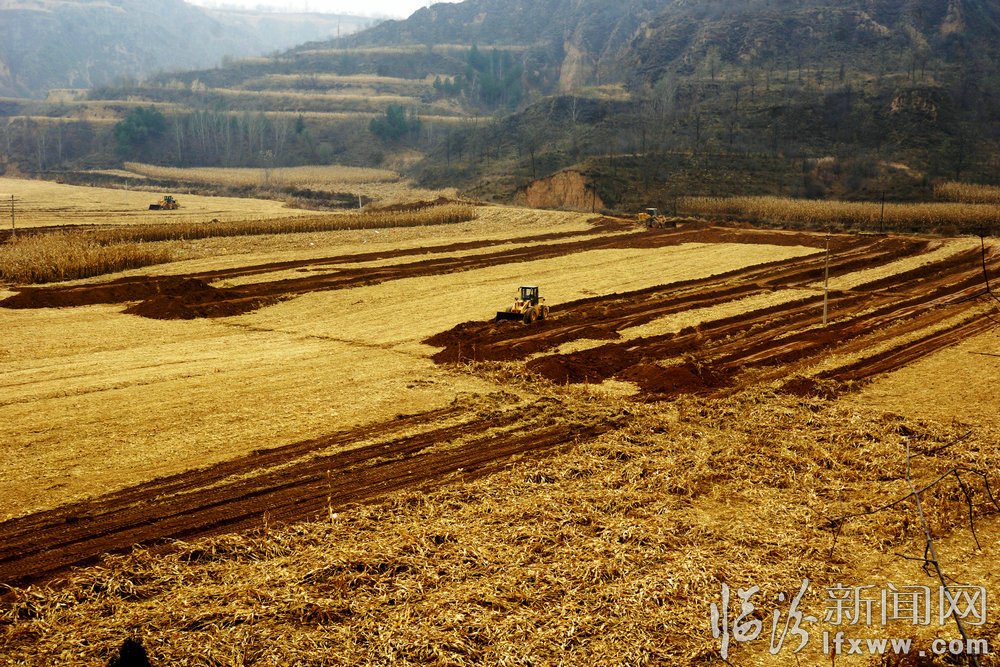 近年来,隰县按照以梨为基、多元发展的总体思路,以一县一业为主攻方向,确定了主攻玉露香、率先达小康的奋斗目标,长抓四配套”(果水配套、果肥配套、果与林下经济配套、果与科技配套),短抓六环节”(栽、接、管、防、储、销),今年秋季又新栽4万亩。图为栽植“玉露香”平田整地工地。