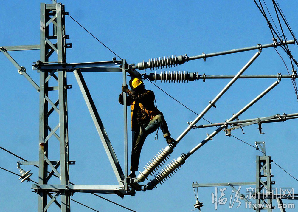 建设中的山西中南部铁路出海通道,西起山西省吕梁市兴县瓦塘镇,终点为山东省日照港,全长1260公里,功能定位以煤运为主,兼顾客运,是我国重要的能源大通道,在隰县境内全长42.15公里。预计2014年年底试运营。国庆节期间,中铁电气化的工人们加班加点,挥汗如雨,在长空蓝天度过佳节。