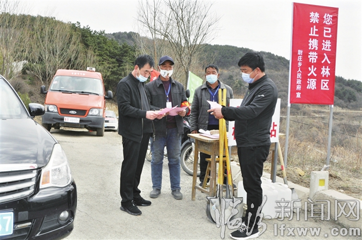 临汾新闻网讯 为做好春季森林防火工作,切实保护森林资源和人民生命财产安全,乡宁县尉庄乡高度重视,周密部署,多措并举严抓森林防火工作。图为尉庄乡桥安路口护林防火检查站工作人员给过往车辆和行人发放森林防火宣传资料。