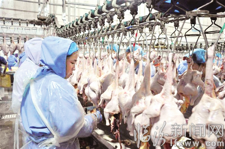 临汾新闻网讯 汾西县长晟科贸有限责任公司是集畜禽产品养殖、采购、禽宰杀、生产加工、销售,速冻食品、调理品和熟制品的研发、采购、加工和销售为一体的公司。该公司严格把控产品工序、狠抓食品质量关,确保消费者放心食用。图为生产线工人正在作业。