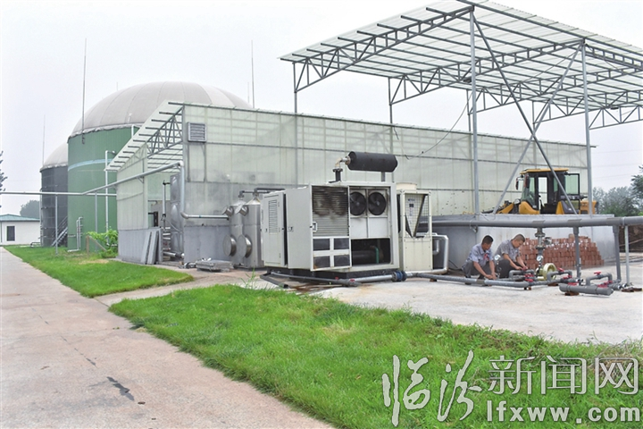 临汾新闻网讯 高温天气下,各生产企业加大了自查自检力度,确保企业安全度夏。图为8月2日,洪洞县大槐树镇秦壁村内的晋丰绿能农业科技有限公司工作人员正在对该公司的沼气生产设备进行检修。