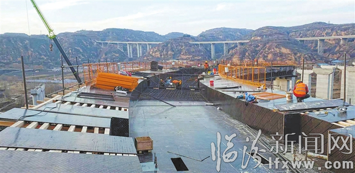 临汾新闻网讯 入冬以来,山西路桥集团隰吉高速公路有限公司针对季节变化,制定了全面的安全防护管理措施,确保项目工程安全推进。图为11月23日,隰吉高速建设项目现场,施工人员正在标准化作业。