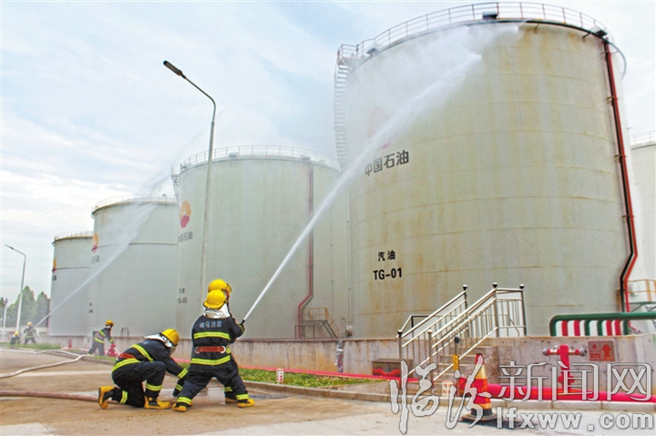 临汾新闻网讯 日前,中国石油侯马油库举行安全生产消防演练,进一步提升干部职工安全生产意识和应急救援能力。图为演练现场。