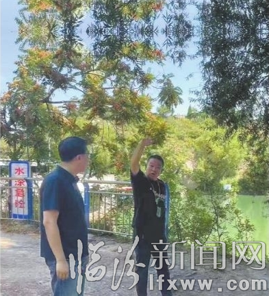 临汾新闻网讯 日前,曲沃县防汛办对水库防汛备汛情况进行检查。图为检查人员在沸泉一库对周边情况进行实地检查。