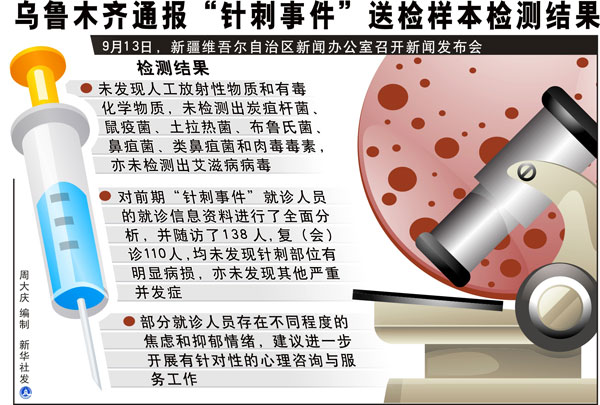 图表:乌鲁木齐通报“针刺事件”送检样本检测结果 新华社发