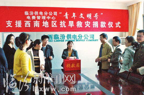 4月6日抗旱救灾捐款活动正式启动。大家纷纷表示:愿尽自己的绵薄之力帮助灾区人民尽快走出困境,早日赢得抗旱救灾的胜利。 鲁先国 章珊 摄
