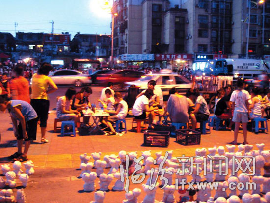 市民周女士常常带着3岁的孩子出来逛逛夜市,夜市上还有专门为小孩子准备的娱乐摊位。周女士说,孩子喜欢坐在夜市上画彩陶、钓“小鱼”,玩堆沙子……记者看到,在夜市的一角,地上摆满了各式各样的陶土娃娃,价格在8元到10元不等。孩子们可以坐在那儿,照着成品照片给陶土娃娃上色。周女士说,孩子在上色的过程中,既可以培养他的耐心,也可以让孩子独立完成一件作品,孩子回去拿着自己完成的彩陶娃娃爱不释手。
