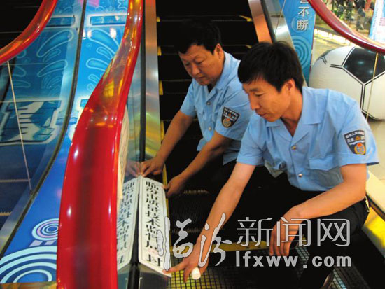 下午3时,位于市区贡院街的滔博运动商城电梯旁,身着质监制服的工作人员,正在认真查看着电梯的合格标签,向工作人员详细询问电梯的维修保养情况。经执法人员检查发现,该商城电梯没有定期检验,且无电梯安全管理人员、操作人员,无应急救援预案等。对此存在安全隐患的电梯,执法人员立即进行了现场封存,并下达了限期整改责令通知书。