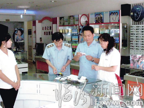质监执法人员对市区验配眼镜店进行监督检查。樊耀东 摄