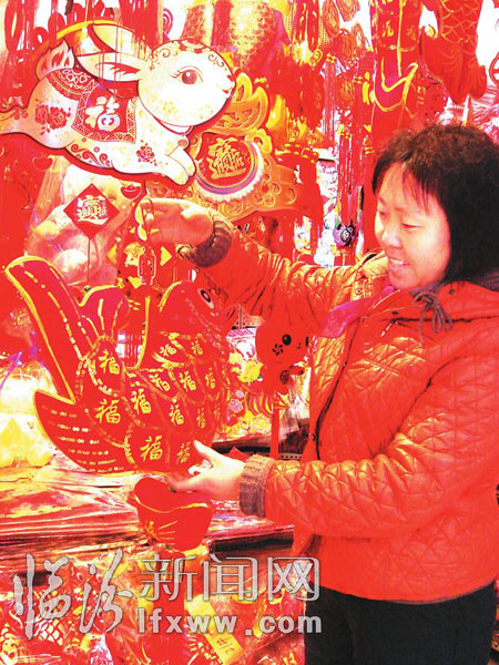记者了解到,在市区百汇市场,象征着新年的福字、灯笼和以兔子为主题的挂饰等都成了畅销物品,大家争相购买,讨个喜庆,商家也早早备足了货。琳琅满目的年货商品也点燃了大家购物的激情。拎着大包小包的陈女士告诉记者:“过年了,总感觉有买不完的东西。过年家里客人多,吃的、用的都要多准备一些。虽然现在买东西很方便,但过年囤货已经是多年养成的习惯,这样感觉更有年味儿。”