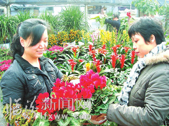 记者在市区五一路的花鸟鱼市场看到,平时相对冷清的花鸟鱼市,年前却成了一个热闹的场所,挤满了前来挑选花卉或观赏鱼的顾客。据一家花卉店老板介绍,年关将近,前来买花的顾客特别多,大家都想在过年的时候为自家增添一份儿自然、喜庆的气氛。像杜鹃、君子兰、大花蕙兰等这类观赏性强、寓意好的花种就特别受到市民的青睐。刚买了两盆杜鹃花的段先生说:“我个人比较喜欢花,但大多数是不开花的绿叶植物,趁过年买两盆杜鹃摆在家里,红红火火图个喜庆。”该花店老板也提醒市民,离过年还有十天,现在买花最好买带花蕾的,经过十天时间,温度一上来,过年正好开花。