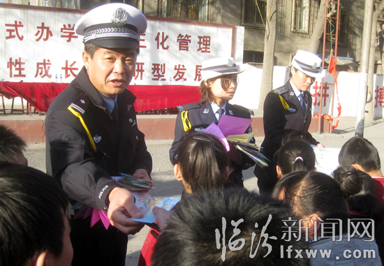 为学生们发放《交通安全常识》