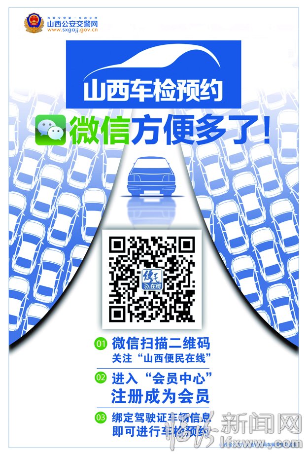 “民众的需要就是我们的工作目标”,6月18日,山西公安交警网全新升级官方微信公众服务号—“山西便民在线”,面向全省11地市广大车主开通微信预约车检服务,自此,全省广大车主均可关注微信公众服务号“山西便民在线”,注册会员并绑定手机、机动车辆等相关信息,系统将自动识别车辆状态是否正常,并提示车主能否进行预约检车,车主只需根据自己的需要,按照微信界面提示选择就近的检测场和检车时间(从预约次日开始一周内任何时段均可自行选择),便可享受到无需排队预约检车服务。需要注意的是,车主如无法按预约时间检车,只要提前1天取消预约即可。如果一年内无故2次“爽约”,今后就无法再享受该服务。