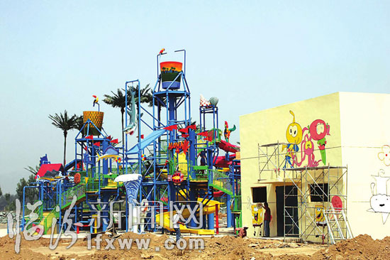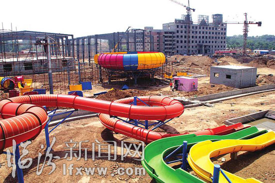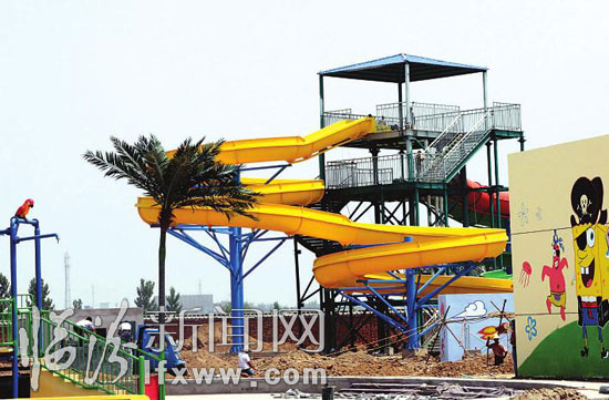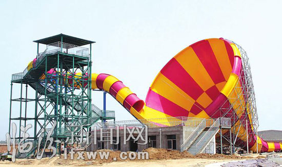 日前,记者走进正在建设中的华尧水上乐园看到,螺旋组合滑道、超级大喇叭滑道、大型互动水屋、巨兽碗滑道等大型基础设施都已就位,工人师傅们正在加紧施工当中。 据华尧水上乐园负责人张海峰介绍,该项目的规划具备大型动感水上乐园和生态休闲两大功能,以夏威夷风情为格调,突出时尚、刺激、健康的水上娱乐文化。其中巨兽碗滑道、超级大喇叭滑道等游戏非常惊险刺激,可以让市民尽情享受夏日的乐趣。(记者 田志华 摄)
