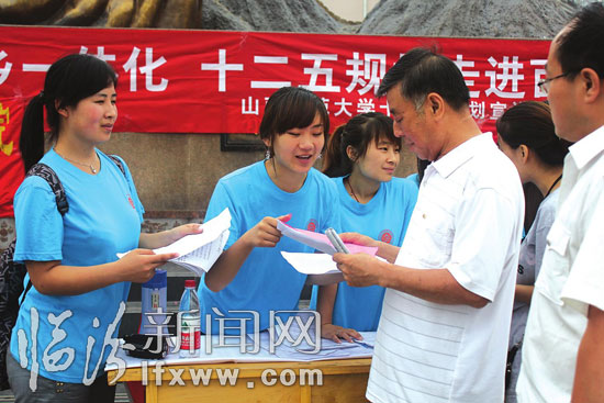 “我们这次活动的主题是‘城乡一体化十二五规划走进百姓家’,希望通过宣讲、宣传页的发放及问卷调查的形式,可以让更多的市民了解和关注‘十二五规划’。”自愿解说组的队员张谦表示,“对于广大市民所关注的医疗保障、住房保障、三农、惠农政策以及留守儿童等问题,都会重点解说。”(记者 李晓林 见习记者 杨美妮 摄影报道)