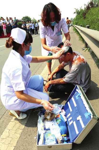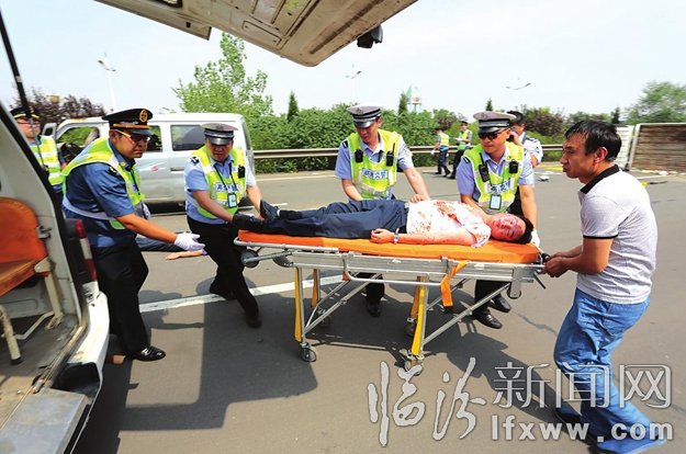 6月18日,临汾高速公路有限公司同临汾市应急办、襄汾县消防大队等联动单位在京昆高速襄汾段举行了交通事故应急突发事件实战演练。通过演练,切实提高了交通事故突发事件应急管理水平。 记者 李自强 摄