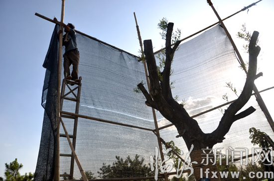据公园里的养护人员介绍,其实大部分植被不需要遮阳,只是有些植物不耐晒才需要一些遮阳防护的措施。据了解,搭建的这种黑色遮阳网能有效防晒、防水份蒸发,保护植物免受阳光直射对其造成的伤害,帮助植物克服酷暑,使其安全度夏。