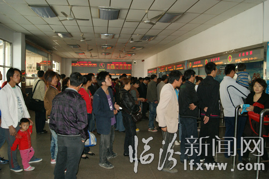9月23日上午十点,记者赶到临汾火车站,售票大厅里早已人潮攒动。车站值勤民警小张告诉记者,“十一黄金周是每年除了春运、暑运之外的第三个客流高峰,买票旅客以国庆期间准备回家的大学生居多,今年也不例外。”记者看到,售票大厅所有窗口都已开放,每个窗口前都排起了长长的队伍。“学校附近的代售点排的队太长了,只好来火车站试试运气,没想到火车站的人更多……”山西师范大学大一新生吕玲向记者抱怨。据小吕说,她家位于陕西韩城,今天是来购买回家的车票的,没料想车站会有这么多人。