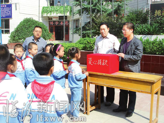 图为临汾市解放路小学为许香香爱心捐款活动现场。