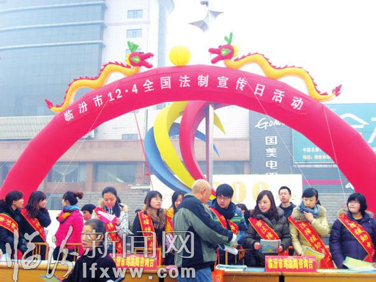 今年是“12·4”全国法制宣传日活动的第11年。今年法制宣传日的主题为“深入学习宣传宪法,大力弘扬法治精神”。结合我市实际,以“争当排头兵,再造新临汾”为目标,努力营造转型跨越发展的良好法治环境,切实增强全面实施“六五”普法规划的紧迫感、责任感和使命感,将“六五”普法和依法治市工作作为加强和创新社会管理的重要手段,不断推进我市经济社会又好又快发展。