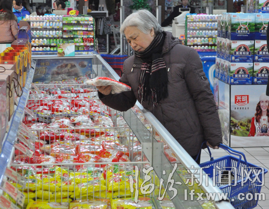 顾客认真挑选速冻饺子