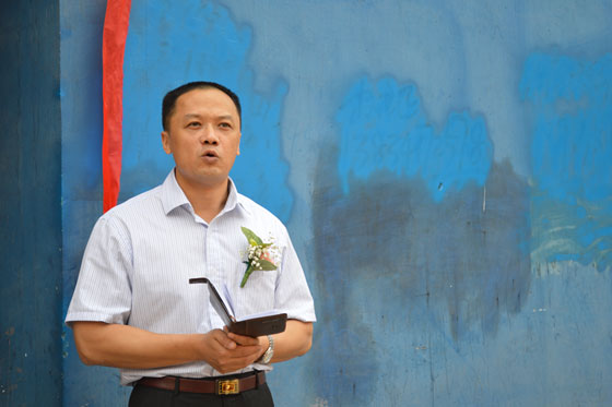 图为宝得网董事长霍聂鹏在建成仪式上发言