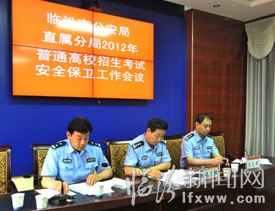 会上,有关单位负责同志宣读了关于2012年普通高校招生考试安全保卫方案,组织领导、主要任务、工作要求和纪律等进行了安排部署,就需要注意的事项进行了强调。