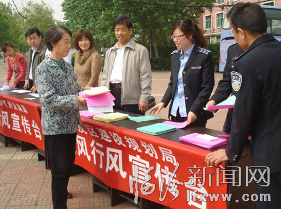 临汾新闻网讯(通讯员 王永全)为进一步扎实推进政风行风建设和民主评议工作,切实贯彻“政风行风主题宣传月”活动精神,4月27日,开发区建设规划局,组织开展了一场以“向人民承诺、请人民监督”为主题的宣传活动。活动中,该局工作人员,向广大企事业单位和社会群众发放了《政风行风建设公开承诺》、《规划程序办事流程卡》、《建设程序办事流程卡》、《城管环卫相关法律法规》等宣传材料1000余份,并对现场群众提出的相关问题进行了认真解答。
