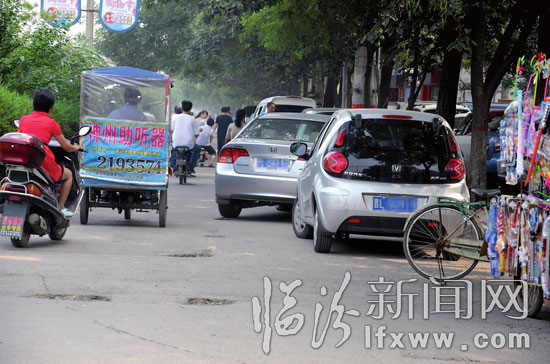 图为原本很窄的街道上,横七竖八地停靠着不少车辆,这不仅给过往行人带来了不便,而且严重影响了市区交通秩序。