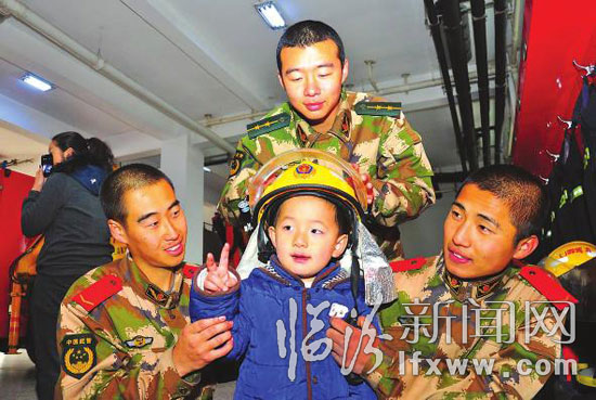 接着消防官兵又带领孩子们参观了他们的寝室和学习的地方,还为孩子们表演了叠“豆腐块”的技能,引来阵阵欢呼喝彩。