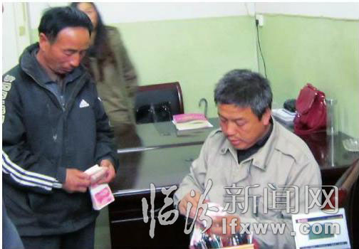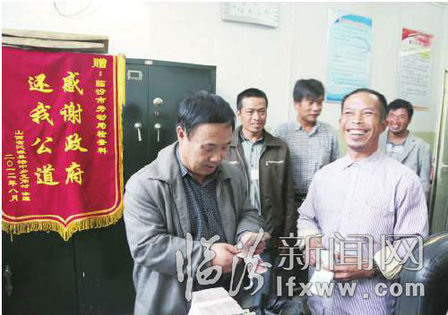图为26名河南籍农民工终于领到了苦等两年之久的工资。 本报记者 白洁 摄
