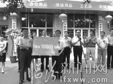 临汾好运来礼品有限公司向尧都区慈善总会捐款一万元。记者赵亿平摄