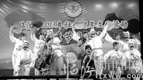 老年朋友正在表演精彩的文艺节目。记者 韩晓芳 摄
