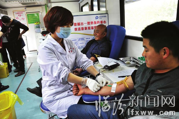 “我第一次献血是1993年在辽宁鞍山上大学的时候,那时,听说献血对自身的造血功能有益,且献血超过3次,自己和直系亲属还可以终身免费用血。”柴创军坐在献血椅上说,毕业后他被分配到了临钢上班,由于每天在矿上,离市里较远,所以每隔半年他都要专程来市内献一次血。后来,只要血站出现缺血的现象,他就义不容辞地来献血。有一次他献血时,在献血车上碰见一个穿临钢工服的工友,他们便聊起来,而这一聊又为他增添了献血的动力。当时献血时给每位献血者100元的路费,而那个工友说他每次都把这100元的路费捐给贫困山区的孩子们,这个举动让柴创军备受鼓舞,想想自己不是有钱人,但也可以用自己微薄的力量帮助别人,这样他献血的行为就更有意义了。