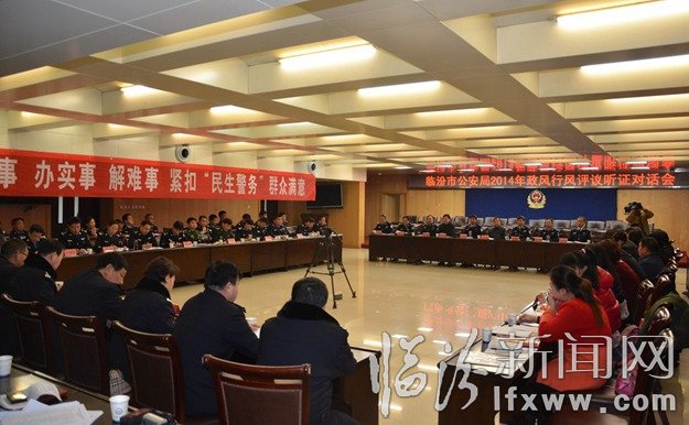 临汾新闻网讯 (记者 王伟) 12月2日下午,市公安局召开2014年政风行风评议听证对话会,增聘23名市公安局政风行风监督员,并向社会各界代表征求建议和意见。市公安局局长马德荣出席会议,市委常务副秘书长、办公厅常务副主任梁洪运应邀参加会议。