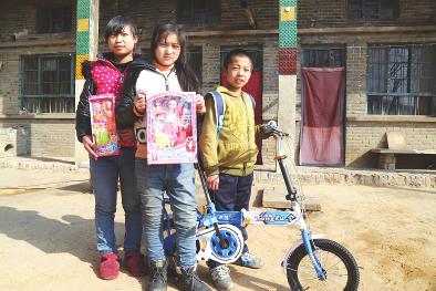 当记者询问蛋宝是否还记得自己许下的春节愿望时,他害羞地回答:我想要一辆自行车,我的两个姐姐想要两个芭比娃娃。”“你们的愿望全部实现了!”齐老师和韩老师从箱子里掏出一辆折叠儿童自行车、两个芭比娃娃、一个新书包及若干新文具。蛋宝顿时看傻了眼,他在开心之余,更想对爱心人士道声感谢。