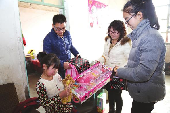 2月10日,本报记者、留守儿童的班主任齐老师以及爱心人士代表韩老师组成“爱心快递组”,给孩子们送上了新年的祝福与礼物。
