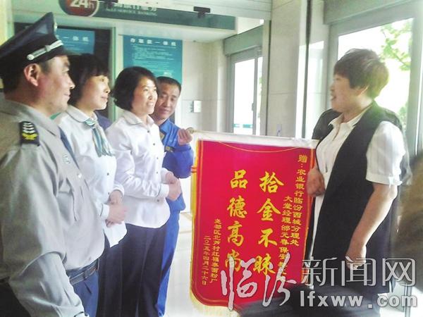 临汾新闻网讯“幸亏你们认真负责,不然我的损失可就大了,太感谢你们了!”4月28日下午,在位于市区解放西路的农行临汾西城分理处,客户崔女士满怀感激之情,将一面写有“拾金不昧品德高尚”的锦旗送到了这里,并不住地称赞农行员工的服务认真细致,让人信赖。