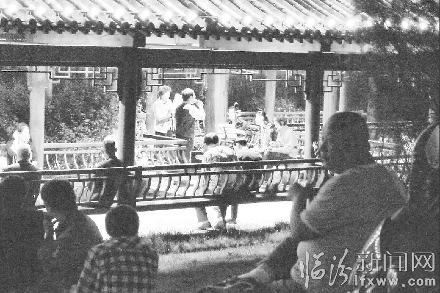 近日,记者在汾河公园三号码头附近看到,几位老人纵情歌唱,吸引了许多人围观。“我们都是音乐爱好者,每天晚上聚在一起唱唱歌、聊聊天。”市民张先生说,汾河公园环境好,亭子内又有灯光、座椅,所以大家经常相约来这里唱歌,自娱自乐之时也给身边的人带去欢乐。 记者 苏亚兵 摄