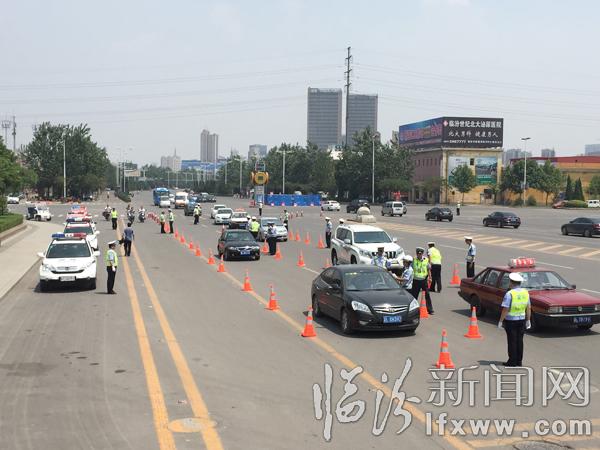 临汾新闻网讯(记者 秦芳媛)6月18日13时10分,室外温度33℃。临汾北城交警大队30余名交通干警来到锣鼓桥东桥头。
