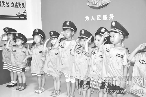 临汾新闻网讯 “作为一名警察,我们要学会标准的敬礼姿势。”在老师的指导下,小警察”纷纷敬礼。